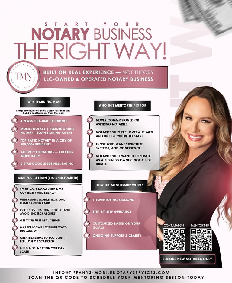 Tiffany's Mobile Notary Services has built a strong reputation for herself as a reputable and reliable notary that offers convenient and professional mobile notary services with the credentials to match!